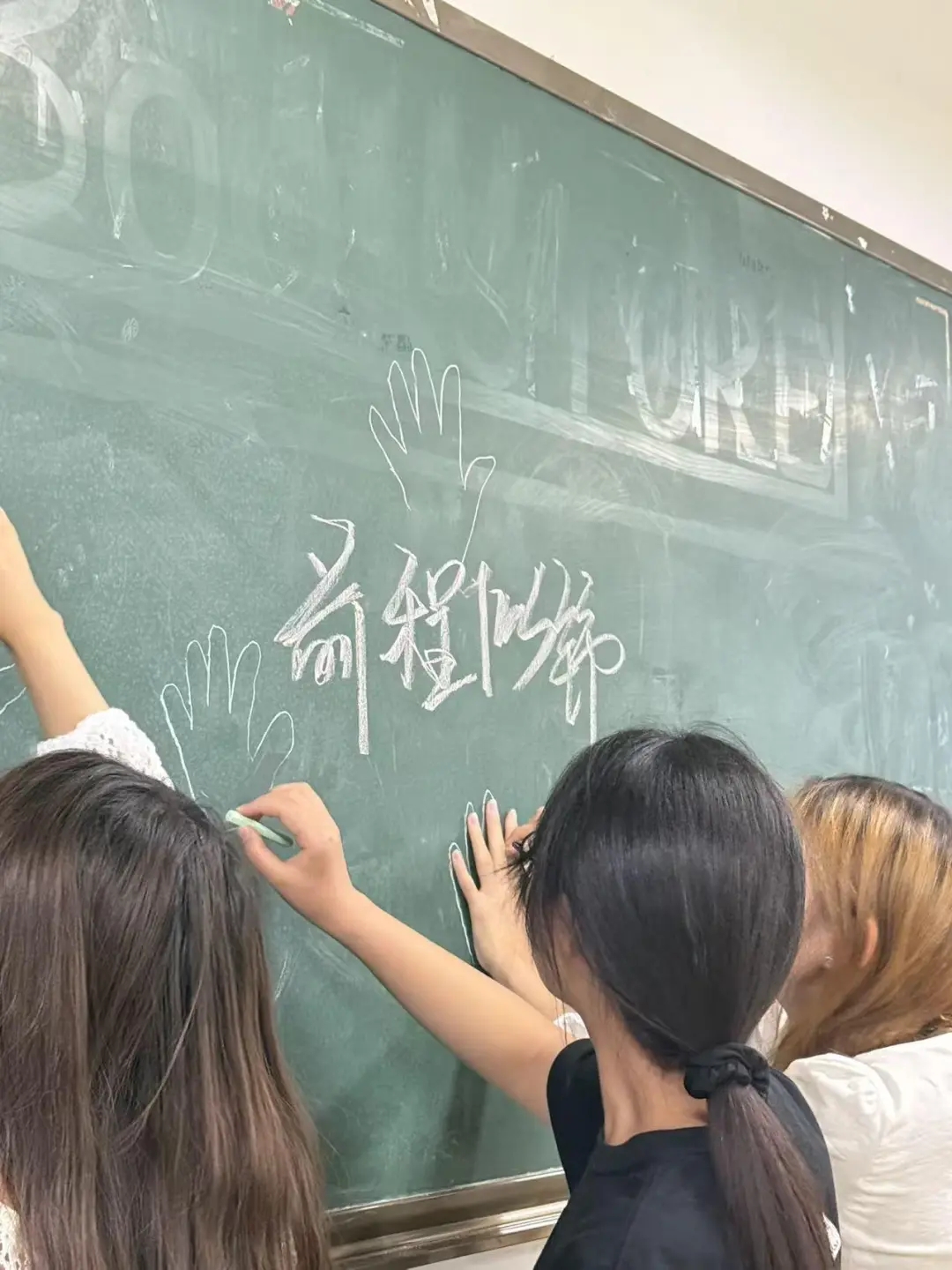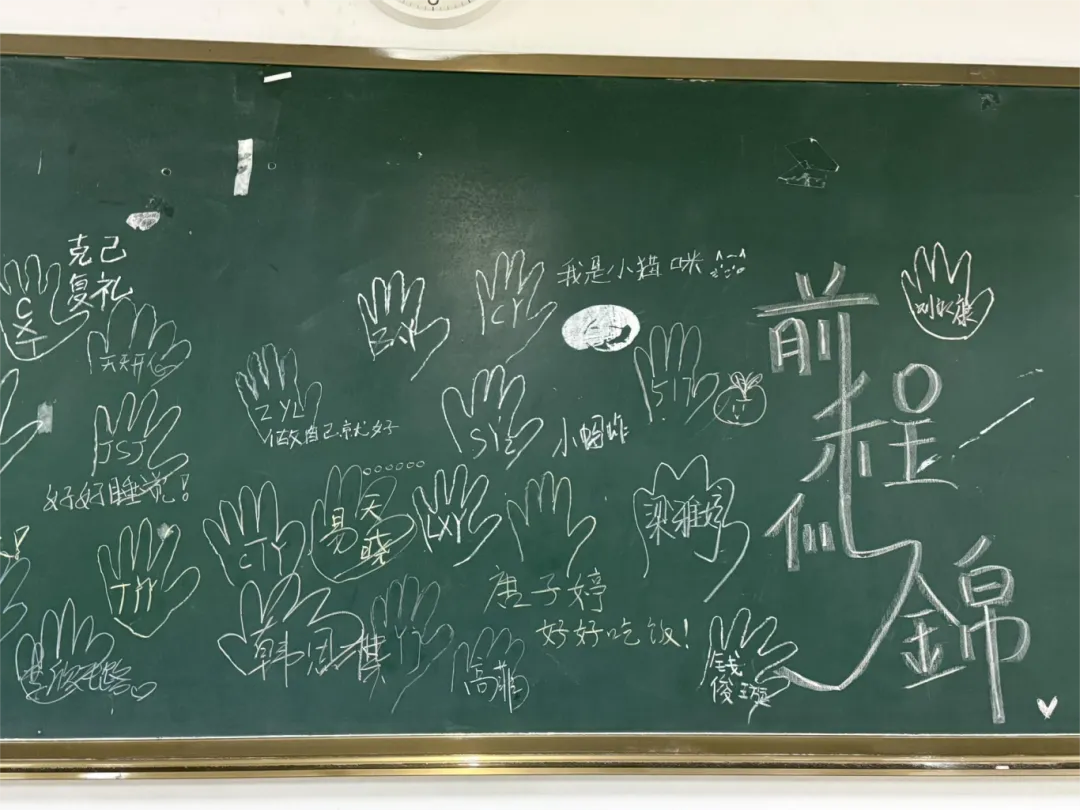 活动现场氛围热烈又温馨。按照座位顺序,同学们依次走上讲台,开启1分钟的“自我画像”时间——以“一种动物或水果”为喻,分享自己与所选事物的共性:有人以“向日葵”自比,愿如花朵般向阳生长;有人称自己像“小松鼠”,带着好奇探索新环境。每段分享结束,教室里都响起阵阵掌声,为独特的表达喝彩。随后,大家拿起色彩各异的粉笔,在黑板上一笔一划勾勒出自己手掌的轮廓,再郑重写下姓名,附上对大学生活的憧憬、对自己的鼓励,或是对班级的美好祝愿,一个个鲜活的掌印与文字,拼凑出班级初建的温暖图景。