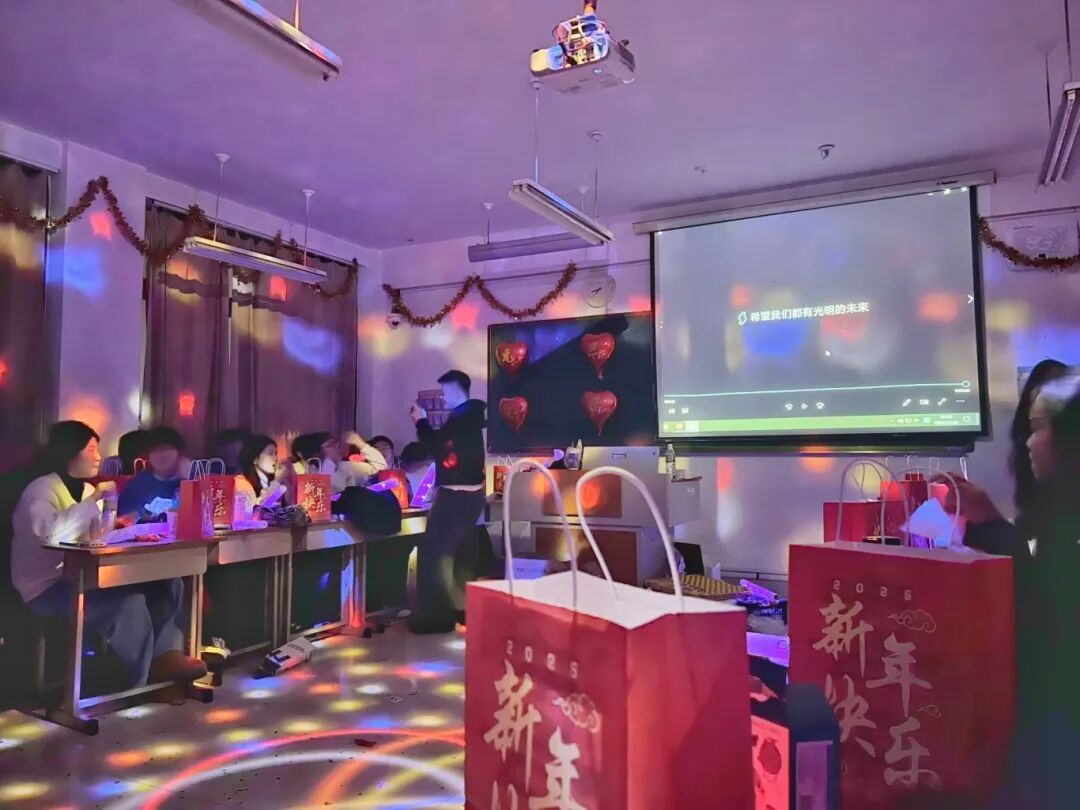 当晚,各班级内布置一新,充满祝福的春联、彩色气球和绚丽彩带交织出新年的氛围。同学们各展才艺,节目形式多样,令人目不暇接。有的班级以活力四射的现代舞开场,瞬间点燃全场热情;还有悠扬动听的歌声,或激昂奋进,或婉转抒情,让大家沉浸在美妙的音乐世界中。