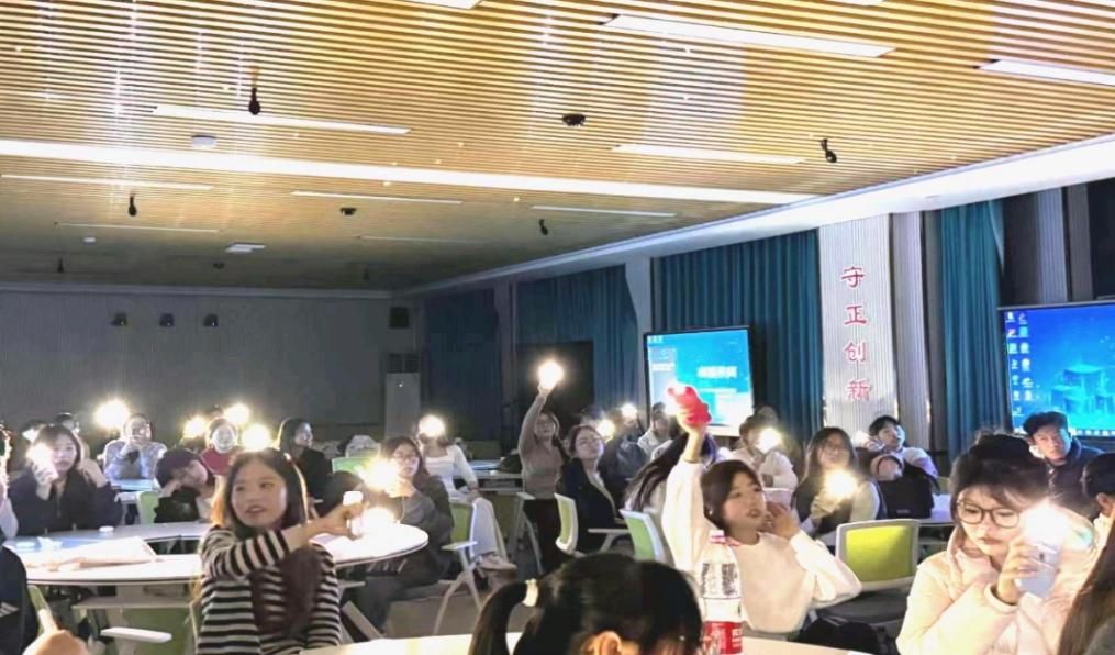 活动现场,围绕“音乐疗愈”主题设置了歌词接龙、图片猜乐器、舞蹈模仿挑战三大趣味环节。首先开启的歌词接龙环节,校园热歌与经典老歌的歌词片段在屏幕上轮番呈现,各组同学紧盯画面、迅速抢答,青春共鸣让现场氛围从安静逐渐升温,掌声与合唱声此起彼伏;紧接着的图片猜乐器环节,PPT上依次展示尤克里里、手碟、古筝等乐器图,同学们举手速度堪比“闪电”,在“抢答+科普”的互动里,不仅为小组赢下积分,更在阵阵惊叹中拓宽音乐认知,拉近了人际距离;最后登场的舞蹈模仿挑战环节,N-bomb艺术团先以活力舞蹈点燃全场,随后各组同学在“10分钟现学现跳”中大胆舒展身体,从最初的生涩卡顿到后来的默契配合,每一次律动都伴随着笑声与加油声,压力在舞步中消散,最终“舞蹈达人组”的精彩呈现,让现场欢呼与掌声达到顶峰,热烈氛围久久不散。