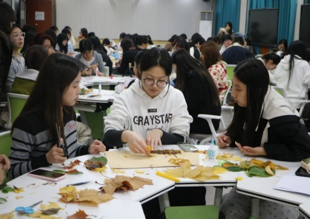 秋意漫过校园的长廊,那些从枝头飘落的叶子,虽褪去了盛夏的鲜嫩,却以干枯的脉络定格了生长的轨迹,用褶皱的叶面留存了阳光的温度。11 月 5 日晚,国际贸易系在智慧教室温情启幕 “秋叶拾趣,筑梦匠心” 主题活动。本次活动由心理健康部牵头主导,创美拾光美育社协同助力,50 余名国贸学子怀揣对自然的热爱齐聚一堂,以秋叶为创作媒介,在指尖流转间赋予落叶新的生命,更在与自然对话中感知生命力量。