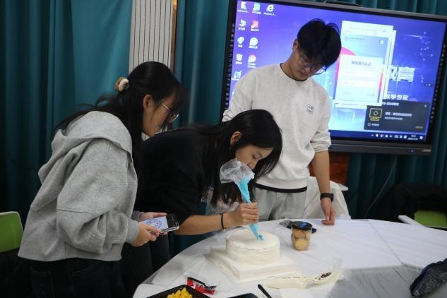 为进一步增强学生干部团队协作能力,锤炼务实担当的工作作风,彰显当代大学生服务集体、践行责任的价值追求。国际贸易系于2025年11月10日晚举办“贸易助味,糕手共创”主题团建活动。活动现场,智慧教室化身充满烟火气与创造力的“协作工坊”。桌面整齐摆放着面蛋糕胚,水果,糖果等食材,以及刮刀,剪刀,蛋糕装饰用品等工具,干部们以部门为单位组成创作小队,摩拳擦掌准备大展身手。各组分工明确又紧密配合:有的负责挤压奶油,精准把控配比,展现出严谨细致的工作态度;有的刮板塑形,手法从生疏到熟练,在反复尝试中攻克技术难关;有的精心装饰糕点,用水果,糖果等摆出创意图案,将审美巧思融入其中。制作结束后,各部门展示成果并分享制作心得。此次“贸易助味,糕手共创”活动,以糕点制作为载体,不仅让学生干部在实践中提升了团队协作能力与问题解决能力,更将专业素养与社会责任教育有机结合。大家在分工协作中学会了倾听与包容,在攻坚克难中增强了凝聚力与战斗力。未来,国际贸易系将继续开展此类特色实践活动,为学生干部搭建成长平台,让青年学子在实践中锤炼本领,在协作中共同进步,以青春之朝气、协作之力量,书写属于新时代大学生的责任篇章,为校园发展与社会进步贡献青春智慧与力量!