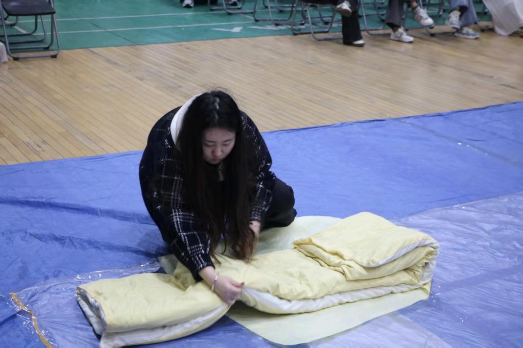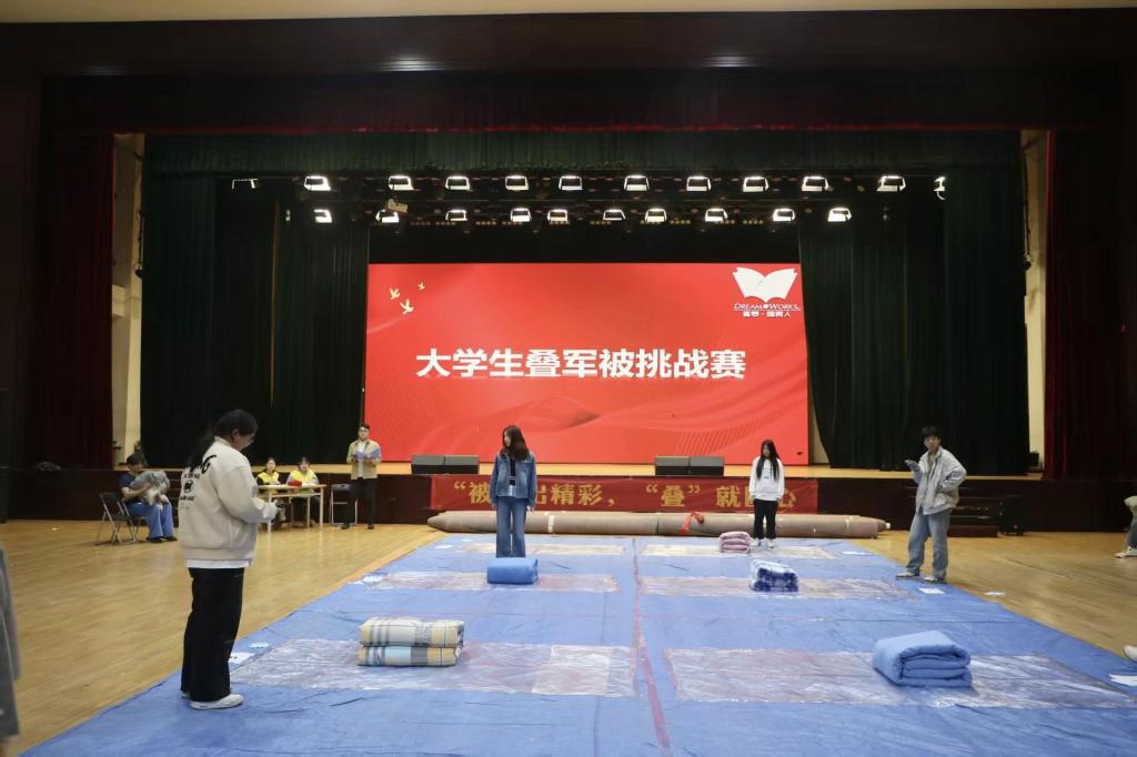2026年4月2日,为锤炼学生意志品质,涵养严谨自律的作风,打造整洁有序的校园宿舍环境,山东外贸职业学院国际贸易系 “被”出精彩,“叠”就匠心叠军被实操挑战赛于学校文体中心圆满举办。来自各班级的参赛选手齐聚赛场,以方寸被褥为载体,在一折一叠的操作中展现青春风采。本次大赛参赛选手被划分为8个小组,采用分组上场、依次展示的方式进行角逐。比赛现场气氛紧张有序,选手们凝神聚力、动作娴熟,从铺平整理、对折压实到棱角刻画,每一步都细致入微、标准规范。看似普通的棉被在选手手中翻转折叠,最终化作横平竖直、棱角分明的“豆腐块”,将日常训练中的严谨态度与精益求精的匠心精神展现得淋漓尽致。
