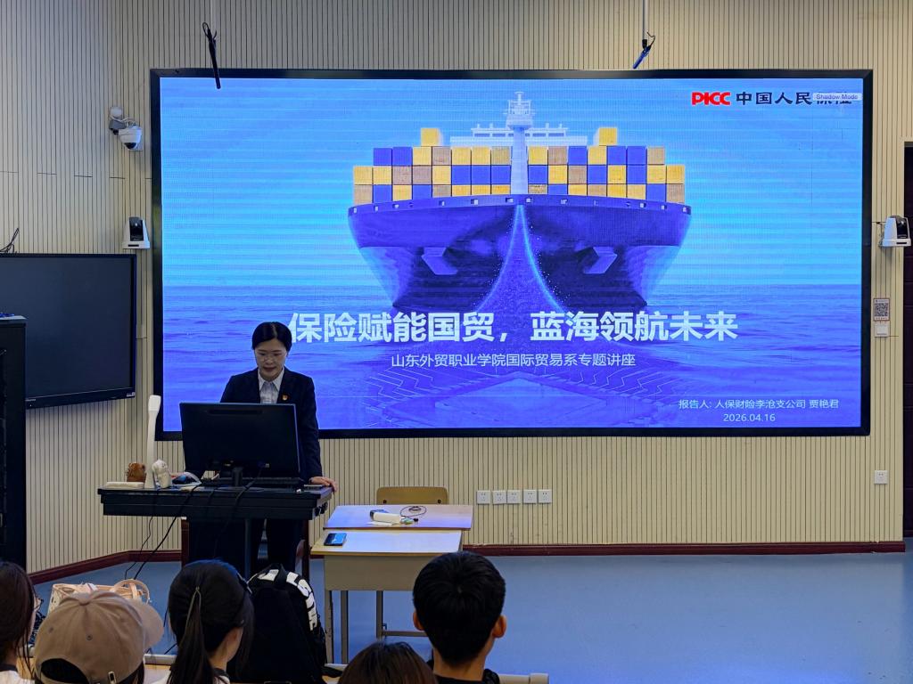 本次活动聚焦外贸行业人才培养需求,以“保险赋能国贸,蓝海领航未来”专题讲座为核心载体。人保财险信用险业务部专家走进课堂,围绕“保险如何为国际贸易高质量发展保驾护航”主题,系统讲解出口信用保险、货运保险等核心险种在收汇安全、物流风控、合规管理中的关键作用;结合跨境电商、新能源汽车出口等外贸新业态,深入剖析保险产品的创新应用场景与实践路径;针对“国际贸易+保险”复合型人才的培养方向,详细介绍了行业就业前景与职业发展通道,帮助学生精准把握行业趋势,明确职业成长路径。